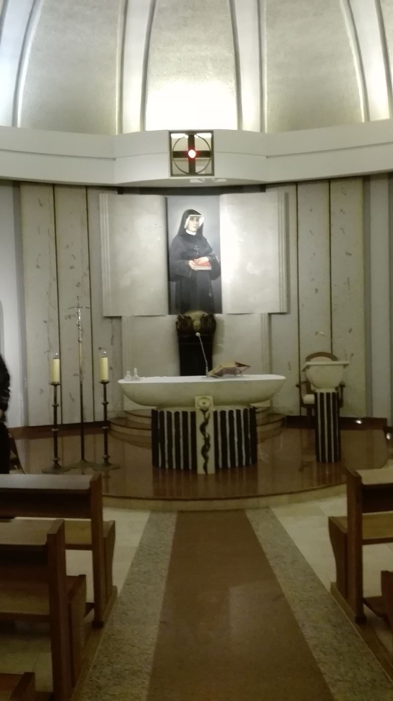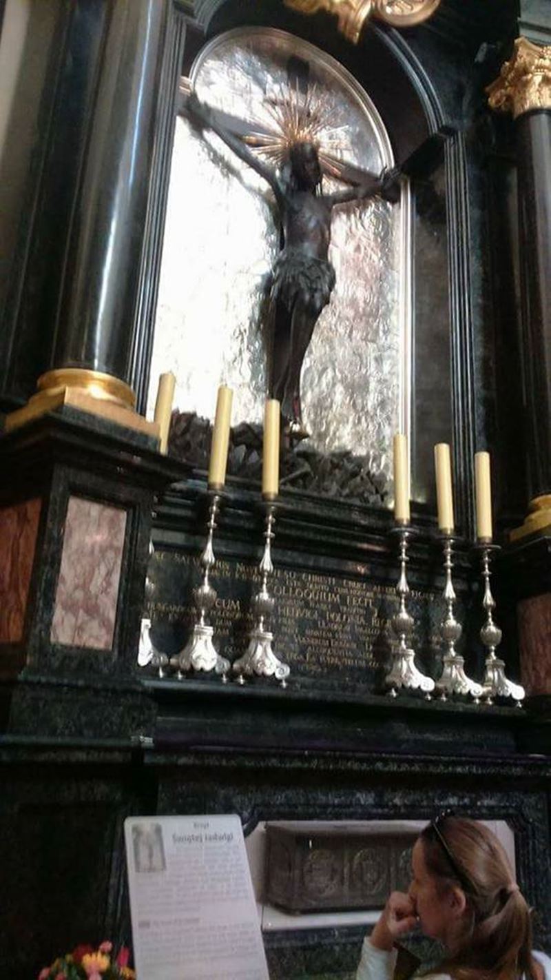 Przy ołtarzu w białej albie służył nasz kolega Wojtek. Siostry Matki Bożej Miłosierdzia przywitały nas bardzo serdecznie i oprowadziły po obiekcie, opowiedziały nam o powołaniu i codziennym życiu św. Siostry Faustyny. Zwiedziliśmy Bazylikę, która w dolnej części składa się z pięciu kaplic poświęconych krajom europejskim. Są to kaplice: włoska, węgierska, ukraińska w obrządku grekokatolickim, niemiecka, słowacka. Nieopodal znajduje się Centrum Jana Pawła II. Przemierzyliśmy i ten szlak, miejsce w którym znajduje się szereg pamiątek i relikwii naszego Papieża.