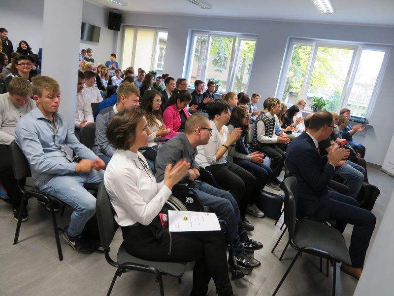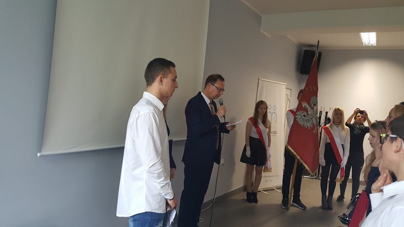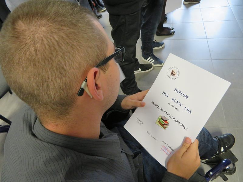 Tegoroczna uroczystość przyrzeczenia klas pierwszych w Zespole Szkół Zawodowych nr 2 w Poznaniu miała szczególną oprawę, uświatnił ją bowiem występ poznańskiego artysty - Piotra Wizy.