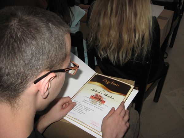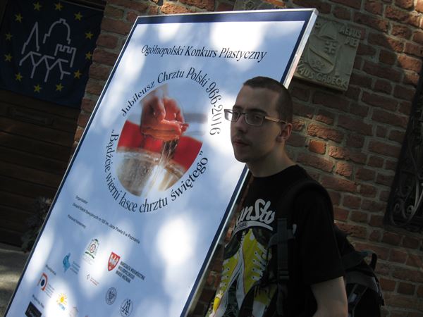 Michała Bloch z klasy 3PA, laureatem Ogólnopolskiego Konkursu Plastycznego pt. „Jubileusz Chrztu Polski 966-2016”