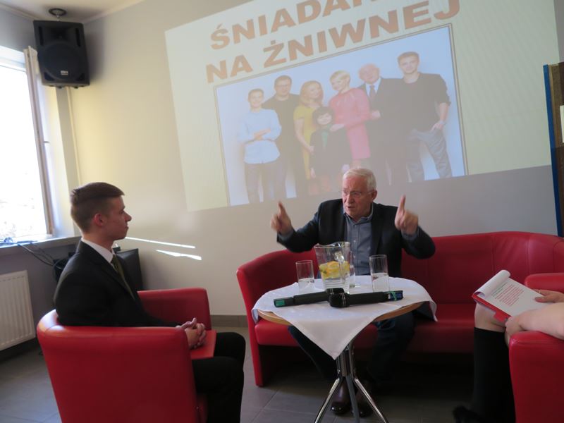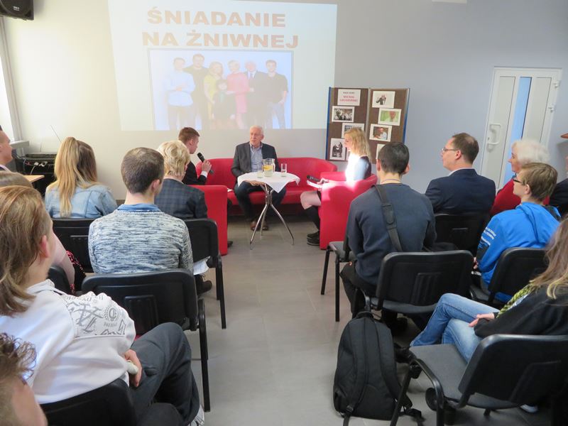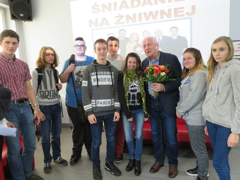 24 listopada br. w świetlicy szkolnej odbyło się w naszej szkole spotkanie z cyklu ŚNIADANIE NA ŻNIWNEJ ze znanym aktorem Michałem Grudzińskim.
